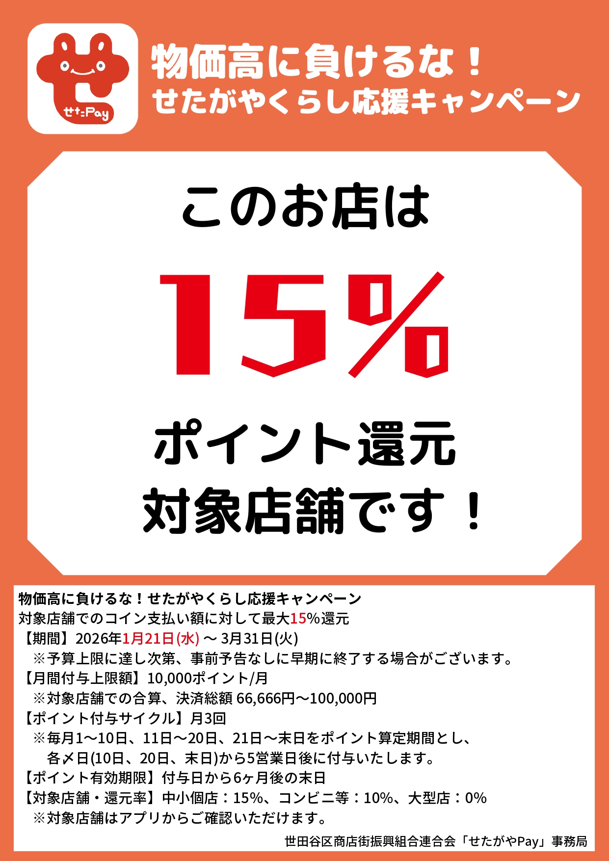 還元率やキャンペーン内容は、せたペイ事務局の発表をご確認ください。