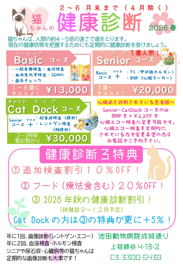 【2月~6月】猫ちゃんの健康診断のお知らせ