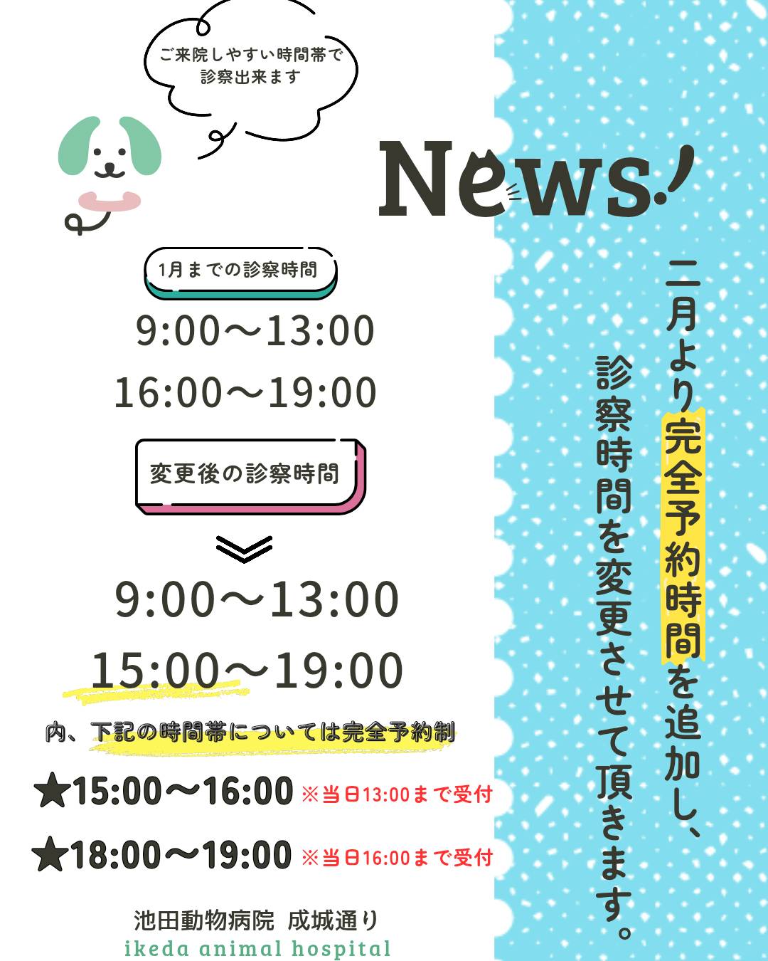 診察時間変更のお知らせ
