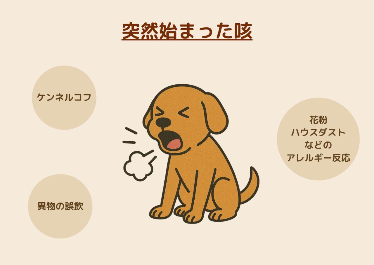 「昨日までは元気だったのに、急に咳をし始めた」という場合、感染症や異物の誤飲、アレルギー反応などが関係している可能性があります。