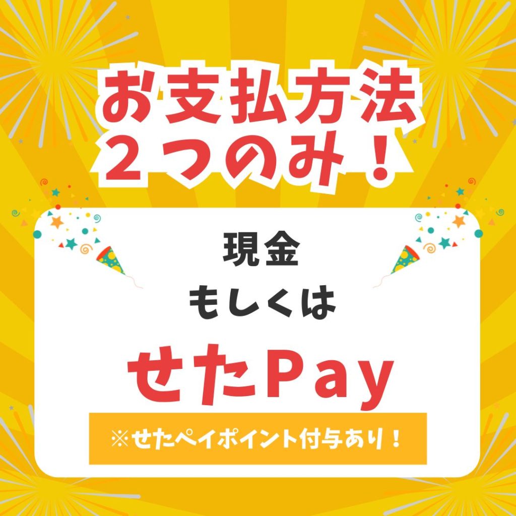 ①お支払は、現金もしくはせたPayのみ